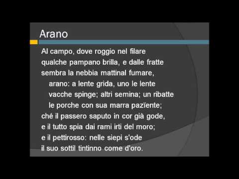 Al campo, dove roggio nel filare arano: a lente grida, uno le lente chè il passero saputo in cor già gode, |