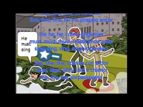 - “If, if, if, i fardelli di / you, you, you, iuta e di coton” → Una frase che gioca sulla sonorità di “if” e “you” con parole italiane che ricordano il commercio tessile.