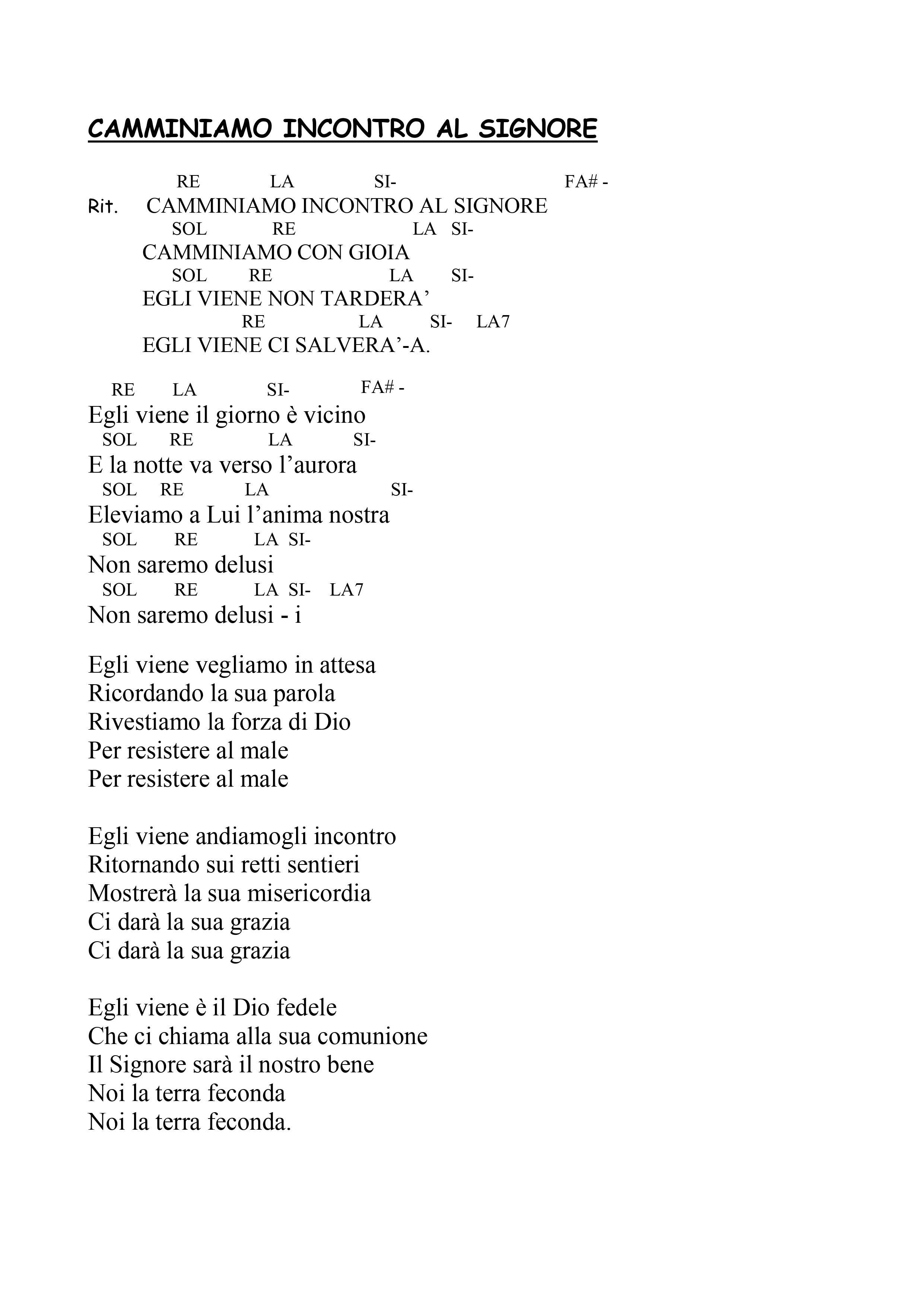Rit. Camminiamo incontro al Signore,