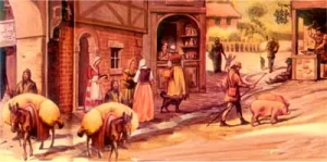 - Economia Agraria: Per gran parte del Medioevo, l’economia fu prevalentemente agricola, con la terra come principale fonte di ricchezza e potere. Nell’Alto Medioevo prevaleva un’economia di sussistenza, mentre nel Basso Medioevo si assistette a una ripresa degli scambi e alla nascita di nuove attività economiche.