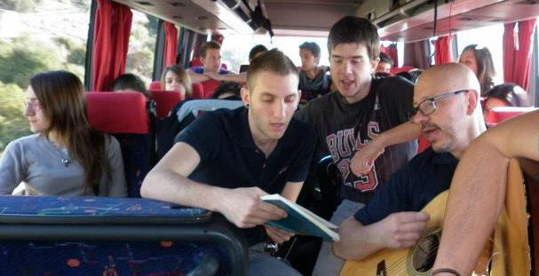 Video Viaggio Provenza schitarrata in pullman con il professor Gaudio durante il Viaggio di istruzione in Provenza