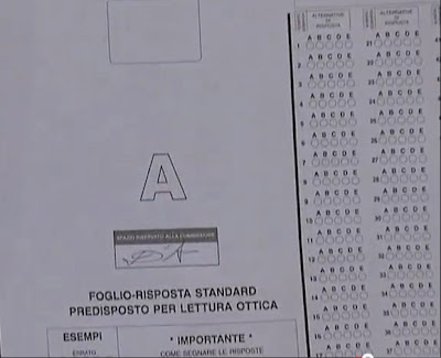 Ciascuno sulla propria postazione troverà il blocco con le 5750 domande identificate da un codice.Sembra che, unitamente al blocco, ciascun candidato avrà in dotazione una scheda personale con i 100 test, su cui apporre le risposte giuste. Il blocco seppur utilizzato e scritto sarà riconsegnato contestualmente alla scheda.