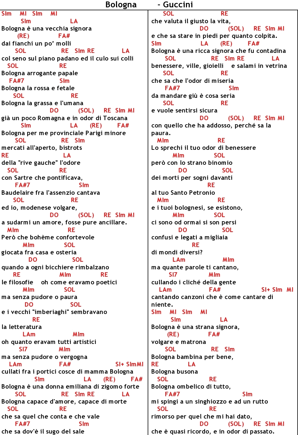 Bologna cover Francesco Guccini