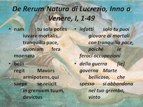 28 Dicembre 2019I versi 28-43 del De Rerum Natura di Lucrezio sono una preghiera rivolta a Venere affinché porti la pace nel mondo, in particolare tra i Romani, interrompendo le guerre dominate dal dio Marte.