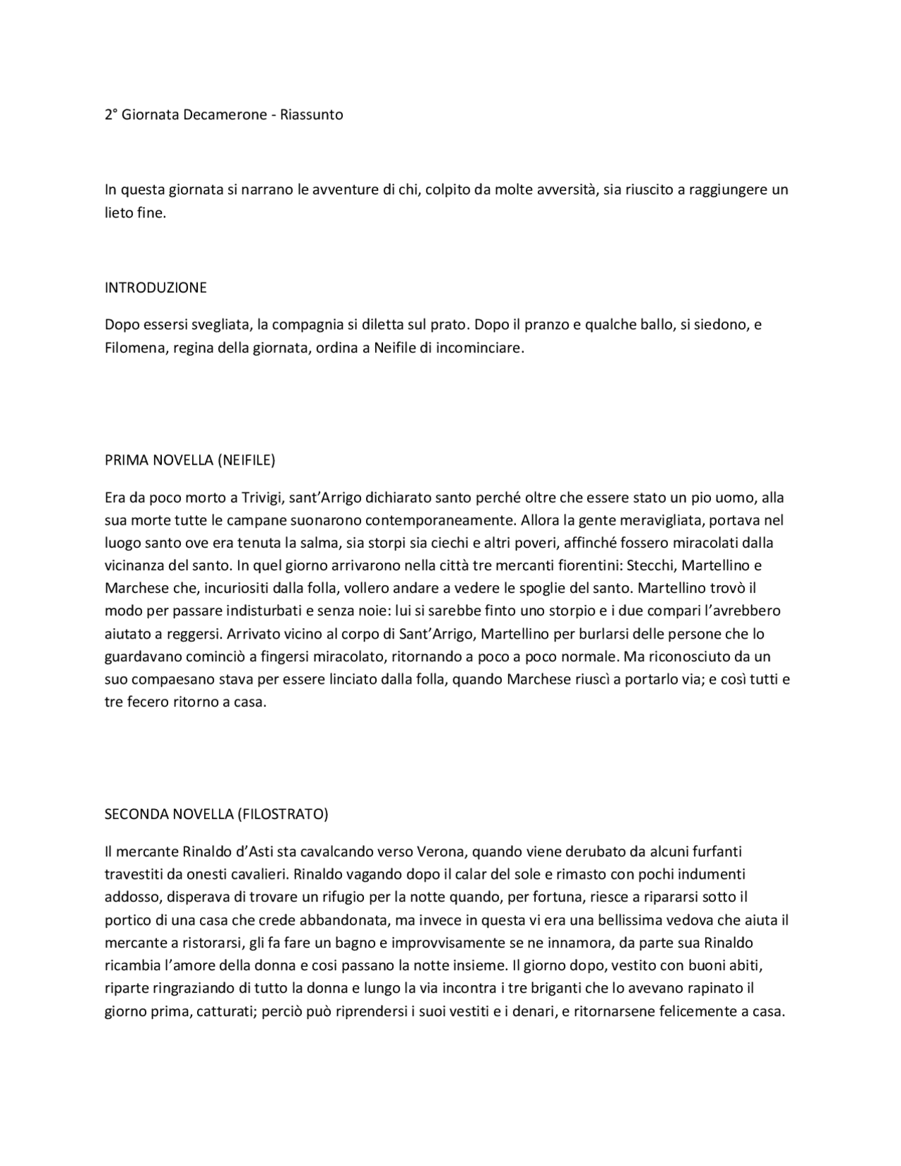 Introduzione alla Seconda giornata del Decameron di Giovanni Boccaccio