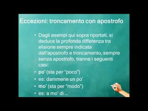 - Troncamento: può avvenire davanti a consonante o vocale.