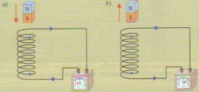 Se la calamita è allontanata dalla bobina (fig. 2b) il verso della corrente indotta è l’opposto.