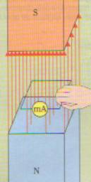 Si trova anche (fig. 3), agli effetti del verso della corrente indotta, che l’avvicinamento del polo Nord della calamita alla bobina equivale all’allontanamento del polo Sud e, viceversa, il verso della corrente indotta nella bobina quando si allontana il polo Nord coincide con quello della corrente che si produce quando si avvicina il polo Sud.