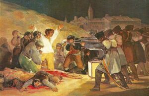 Capolavoro che raffigura l’esecuzione dei patrioti spagnoli da parte delle truppe francesi. L’opera è un’intensa denuncia della violenza, con una composizione drammatica, una luce teatrale che illumina la vittima al centro e un’espressione di terrore e disperazione nei volti dei condannati.