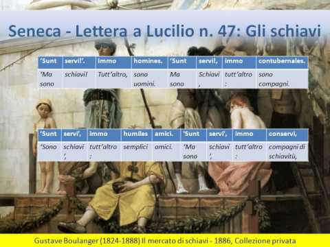 In questa lettera, Seneca, con il suo solito tono filosofico e moraleggiante, invita Lucilio a trattare gli schiavi con dignità, ricordando che, anche se schiavi, sono comunque esseri umani.