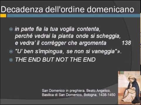 Si tratta di un momento altamente riflessivo, in cui San Tommaso d’Aquino, il narratore, elogia la vita di San Francesco e poi riflette su come i suoi seguaci abbiano abbandonato i principi originali del fondatore.