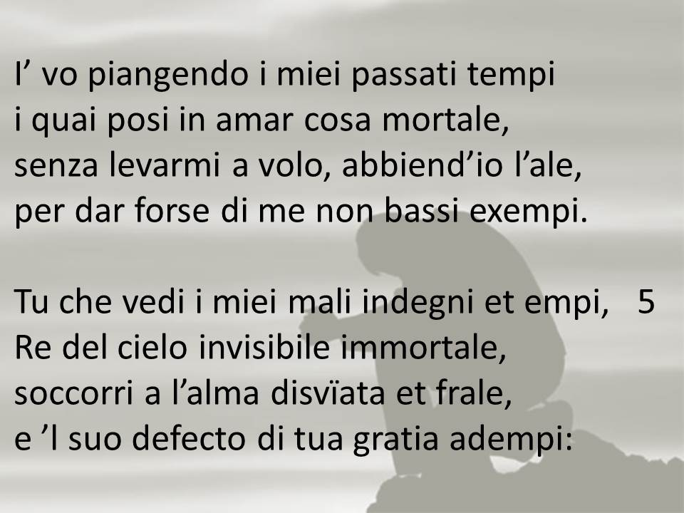 Nella sua poesia, Petrarca si rivolge a Dio come Padre del cielo, esprimendo pentimento e chiedendo aiuto per liberarsi dal peso dei suoi peccati. Il tema dell’amore diventa così l’occasione per una rigorosa autoanalisi, un bilancio sincero della propria vita.