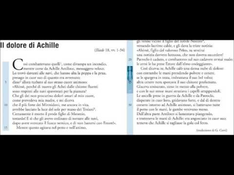 Questi versi del diciottesimo libro dell’Iliade descrivono il momento in cui Achille viene a sapere della morte del suo amico più caro, Patroclo. Antiloco, figlio di Nestore, porta la notizia ad Achille, che reagisce con un dolore immenso e disperato. La descrizione della reazione di Achille, che si cosparge di polvere e cenere e si strappa i capelli, è un potente ritratto del lutto e della disperazione.