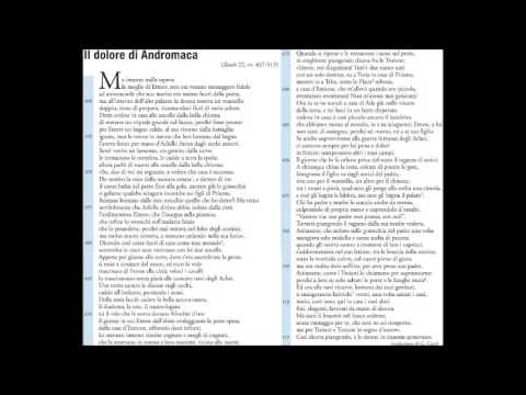 Questo passaggio descrive la reazione di Andromaca, la moglie di Ettore, alla notizia della morte del marito. Andromaca è all’oscuro degli eventi tragici che si sono appena verificati fuori dalle mura di Troia. Quando sente le urla di dolore provenienti dalla torre, sospetta che qualcosa di terribile sia accaduto. Corre fuori e vede il corpo del marito trascinato dai cavalli di Achille. Andromaca sviene e, quando riprende conoscenza, esprime il suo dolore e la sua disperazione, preoccupandosi anche del futuro del loro giovane figlio, Astianatte.