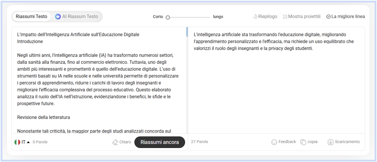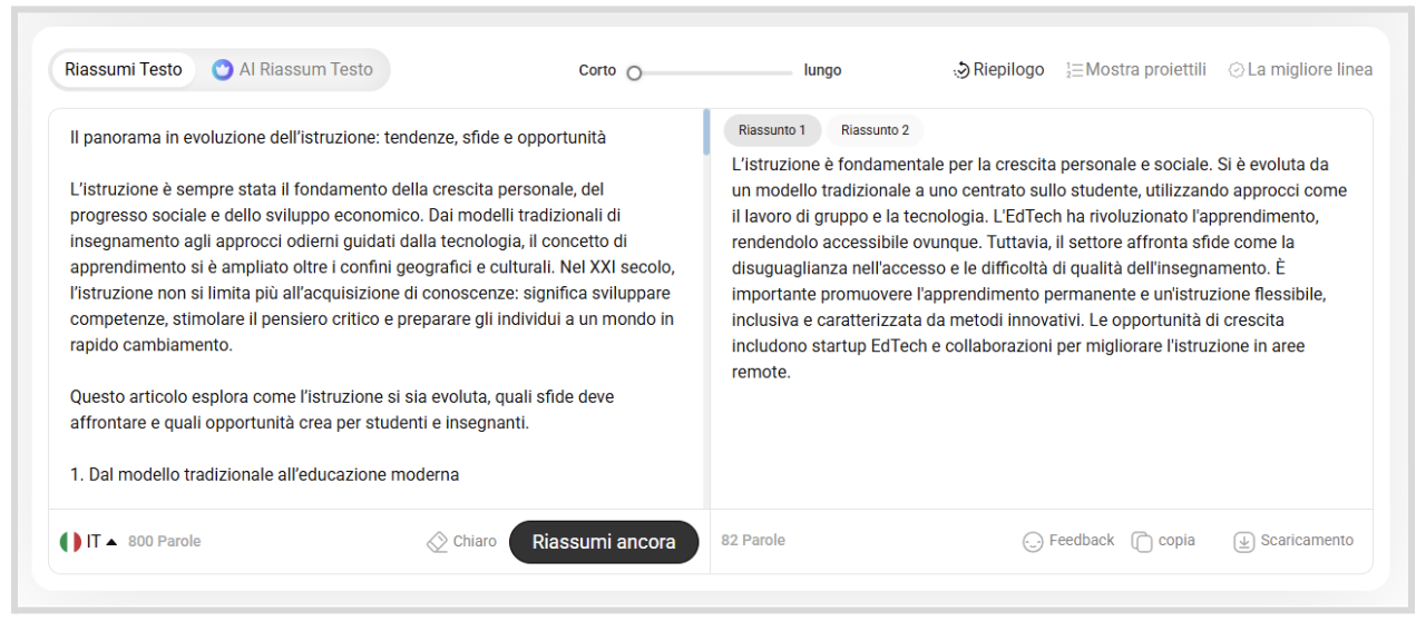 - Interfaccia più semplice: L’interfaccia del riassuntore è progettata per essere semplice da usare anche per i principianti.