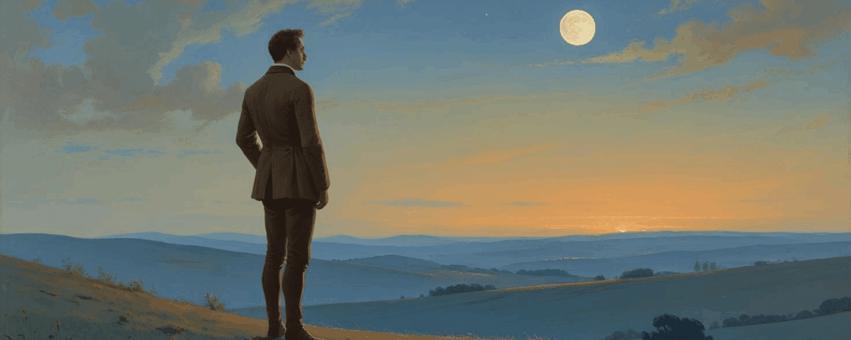 - Prima Stanza (vv. 1-19): Il Tramonto della Luna. La poesia si apre con una descrizione evocativa e suggestiva del tramonto della luna in una notte solitaria. La luna “inargentata” (v. 2) crea un paesaggio suggestivo, in cui le ombre generano “mille vaghi aspetti e ingannevoli obbietti” (vv. 4-5). Questo mondo di illusioni ottiche, tipico dell’esperienza giovanile, svanisce con lo scendere della luna dietro le montagne o nel mare. La progressiva scomparsa della luce è accompagnata dall’imbrunire del mondo (“si scolora il mondo”, v. 12; “la valle e il monte imbruna”, v. 14). La notte resta “orba” (v. 15), privata della sua guida. Il canto malinconico del carrettiere, che saluta l’ultimo barlume della luce, simboleggia la consapevolezza della perdita e l’ineluttabilità del passaggio. Questa prima parte stabilisce il terreno metaforico del componimento: la luna è la giovinezza, il paesaggio illuminato sono le illusioni e le speranze, la loro scomparsa è il declino.