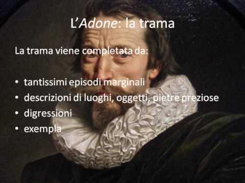 Il poema si compone di venti canti e narra le vicende mitologiche di Adone, giovane e bellissimo amante della dea Venere. La trama si dipana attraverso una serie di avventure e incontri che mettono in risalto il contrasto tra l’amore puro e le tentazioni terrene, in un contesto di meravigliose descrizioni della natura e dell’arte.