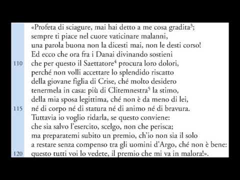 nalisi dettagliata dei versi del primo libro dell’Iliade di Omero, incentrati sulla contesa tra Agamennone e Achille , uno dei momenti fondamentali dell’opera. Questo episodio è cruciale perché pone le basi per l’intero poema epico