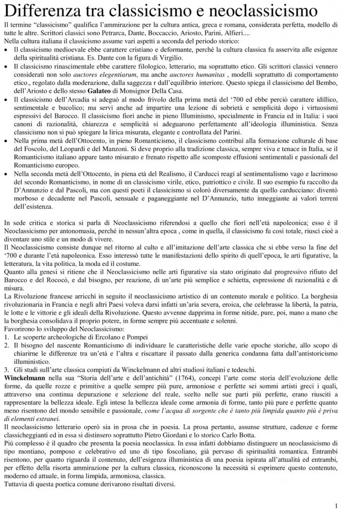 Classicismo e Neoclassicismo