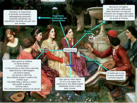 Pampinea suggerisce di fuggire temporaneamente dalla città per sfuggire alla peste. Reclutano tre uomini, Panfilo, Filostrato e Dioneo, che si uniscano a loro e (insieme ai loro servi) lasciano la città. In campagna, Pampinea suggerisce di trascorrere i caldi pomeriggi raccontandosi storie nel fresco dei giardini. Nelle due settimane successive (facendo una pausa il venerdì e il sabato), i membri del gruppo, o brigata, raccontano dieci storie ciascuno. Ogni giorno, un membro governa come sovrano, dirigendo l’intrattenimento della giornata e stabilendo il tema dei racconti.