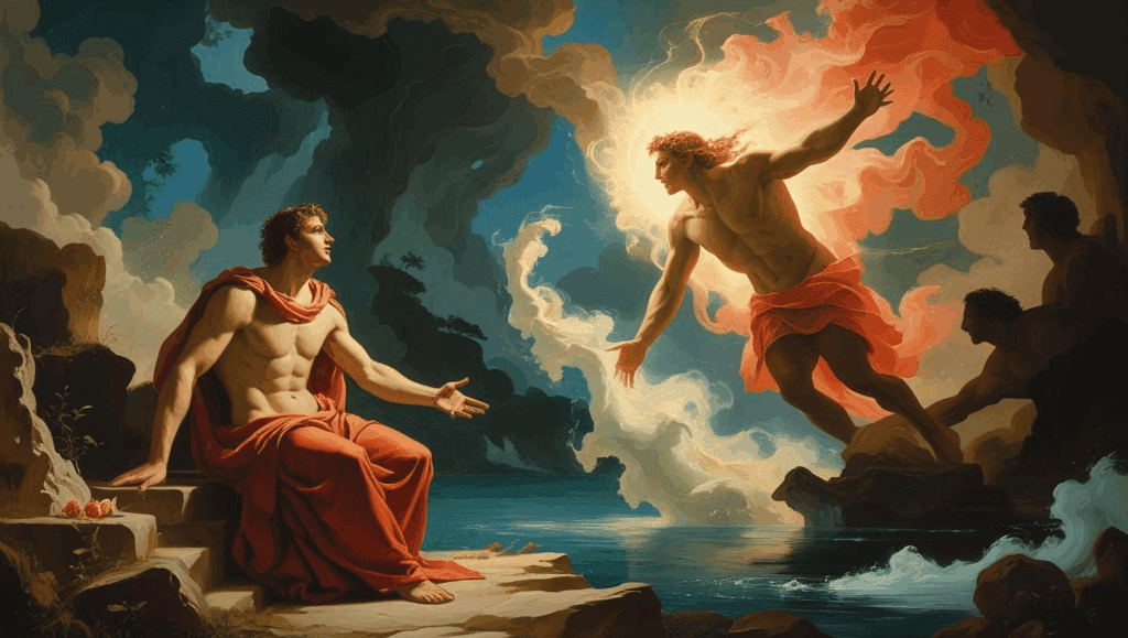 - Il Dio Loci: Il dio Tiberino è la personificazione del fiume Tevere, il genius loci per eccellenza di Roma. La sua apparizione dal “fiume ameno” e “tra i rami dei pioppi” è intrisa di elementi naturali, a sottolineare il suo legame indissolubile con il territorio.