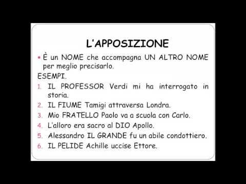 - Apposizione determinativa: specifica in modo restrittivo il nome a cui si riferisce. Esempio: “Il poeta Dante” (non qualsiasi poeta, ma proprio Dante).