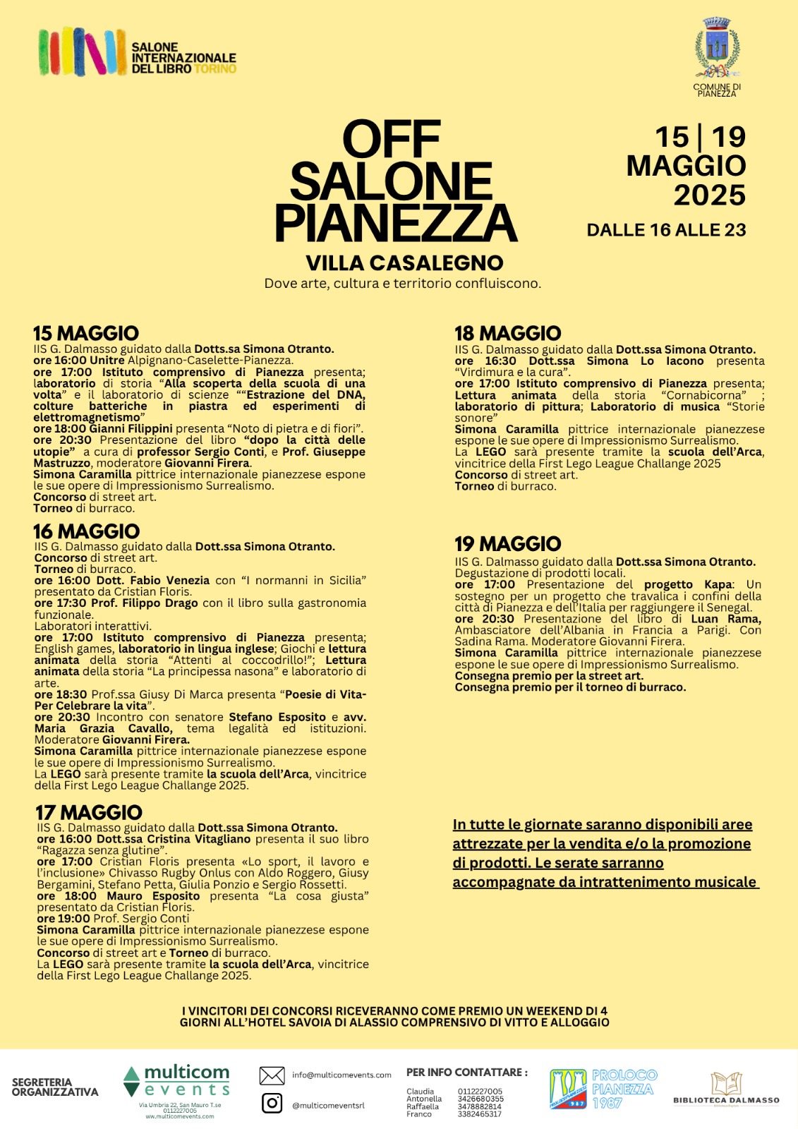 Ma non è tutto: dal 15 al 19 maggio 2025, la suggestiva Villa Casalegno ospita una nuova edizione del Salone OFF Pianezza, parte integrante del circuito del Salone Internazionale del Libro di Torino. Questo evento culturale rappresenta un momento di forte sinergia tra scuole, artisti, istituzioni e cittadinanza, un’occasione per stimolare la creatività, il dialogo e la partecipazione attiva, con un programma ricco di laboratori, letture animate, incontri con autori, attività artistiche e ludiche.