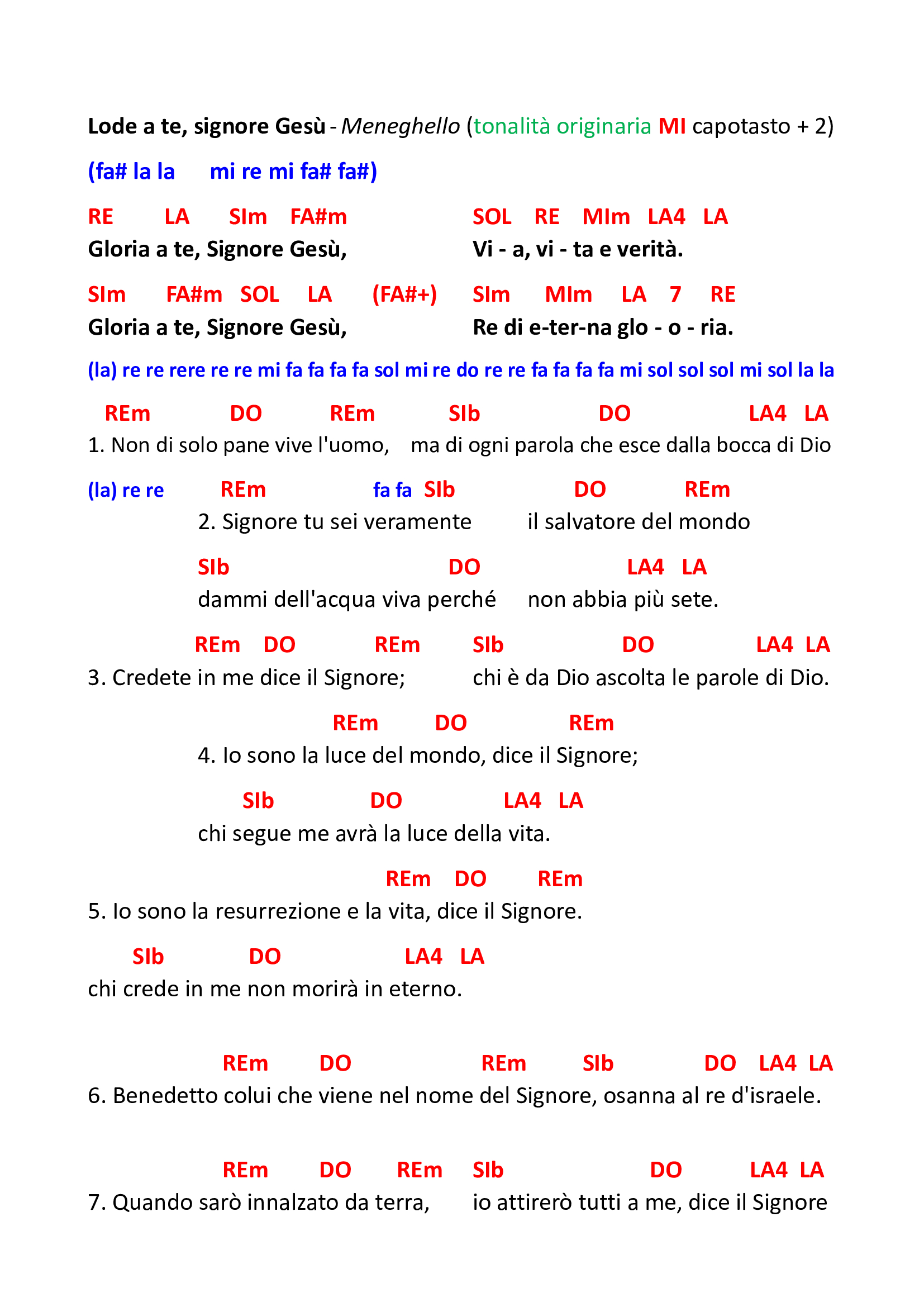 Lode a te, signore Gesù – Meneghello (tonalità originaria MI capotasto + 2)