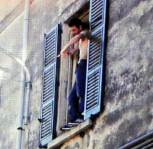 Il cornicione era stretto, un quaranta centimetri di larghezza. L’uomo stava fra due finestre, ma non era possibile raggiungerlo, né da destra né da sinistra. Teneva la schiena al muro, e il sole lo investiva in pieno. Aveva lasciato dentro la giacca. Aveva la camicia bianca aperta sulla gola, e pareva proprio un uomo pronto alla pena capitale.