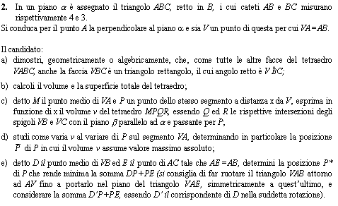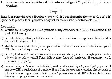 La prova consiste nello svolgimento di due soli quesiti, scelti tra quelli proposti.