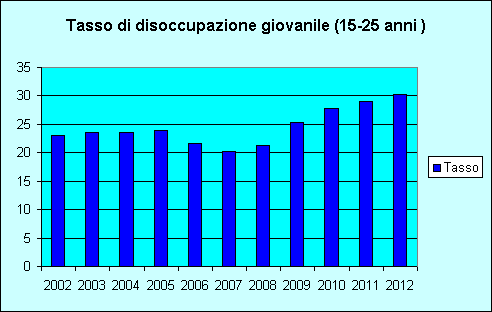 Riportiamo qui una tabella sui dati della disoccupazione giovanile purtroppo in crecita negli ultimi anni
