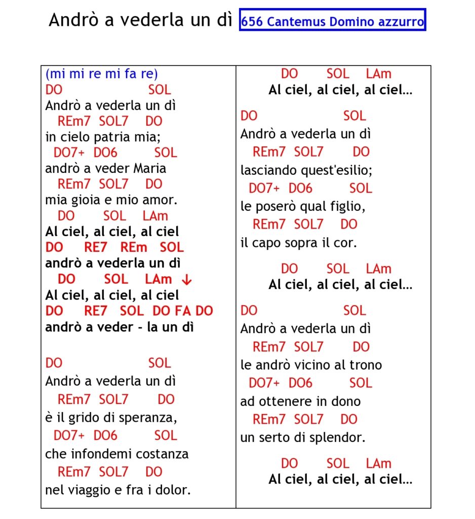 Meditazione, analisi, commento spirituale, testo e accordi del canto mariano “Andrò a vederla un dì” (n. 656 del Cantemus Domino), che può accompagnare l’esecuzione del canto […]