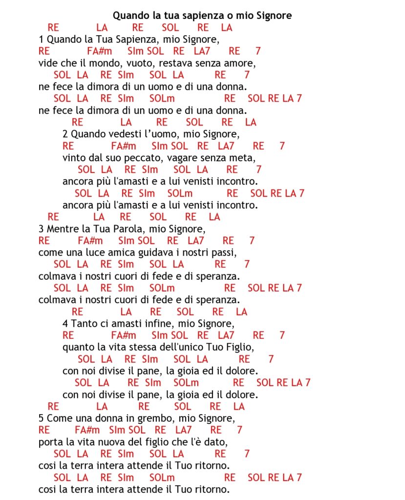 🌟Il canto “Quando la tua sapienza, mio Signore” è un inno meditativo sulla storia della salvezza, narrata dal punto di vista dell’amore di Dio e della […]