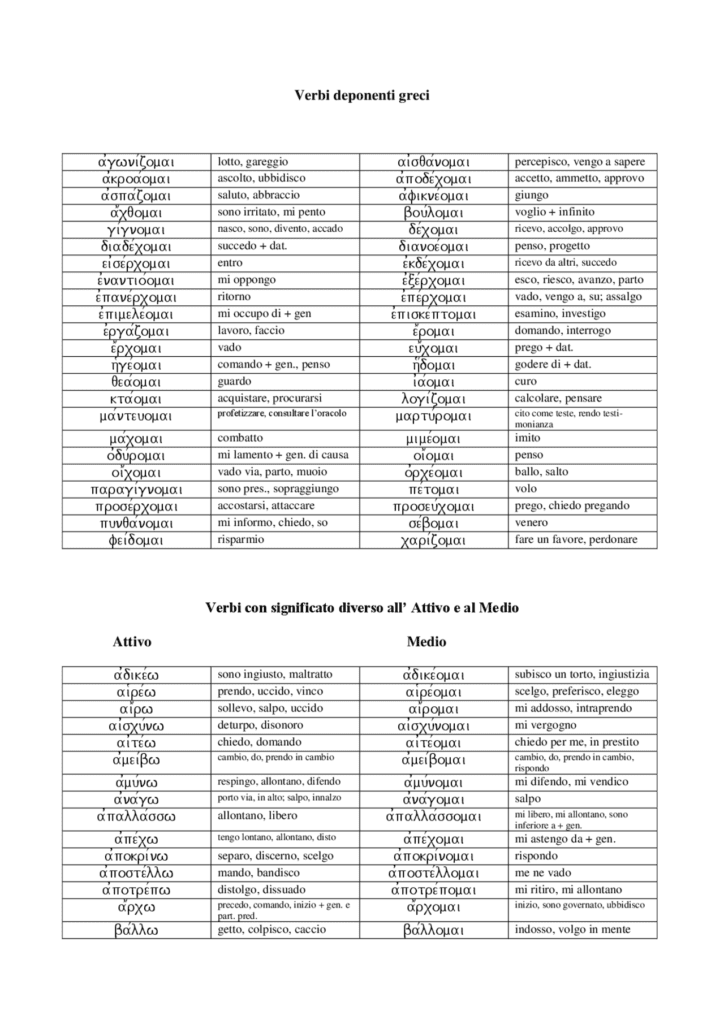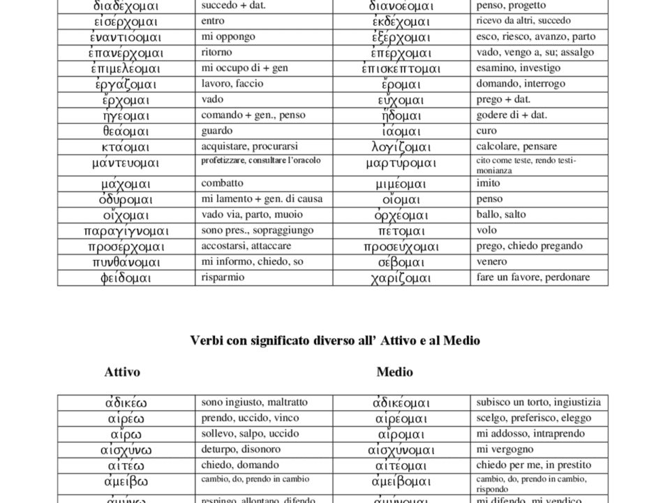 Tabella dei verbi greci, a fianco traduzione in italiano VERBI TRADUZIONE ἄγω βάλλω γράφω ἔχω λαμβάνω λέγω φεύγω φέρω βούλομαι γίγνομαι δύναμαι μέλλω θέλω ὁράω ἕρχομαι […]
