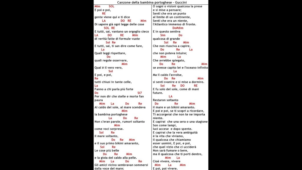 “Canzone della bambina portoghese” è una delle canzoni più celebri di Francesco Guccini, inclusa nell’album “Radici” pubblicato nel 1972. La canzone racconta la storia di […]