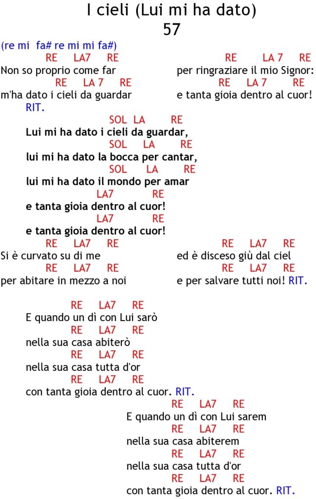 Guarda quest’offerta (traspose -2) REm 1. Guarda questa offerta, DO REm guarda a noi, Signor: SIb SOLm tutto noi t'offriamo LA per unirci a te. REm […]
