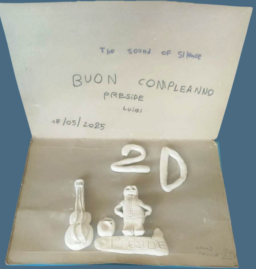 Grazie a tutti gli alunni della Seconda D Secondaria di primo grado di Belgioioso, insieme ai quali ho cantato The sound of silence alla Festa della Poesia, in particolare a Nicolò, che mi ha fatto gli auguri di compleanno così: